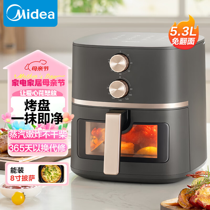 美的(Midea)空气炸锅 免翻面 可视嫩烤 家用大容量 5.3L 炸烤箱一体 精准控温 不沾易洗 不用翻面 KZE538J5价格:239.00元!