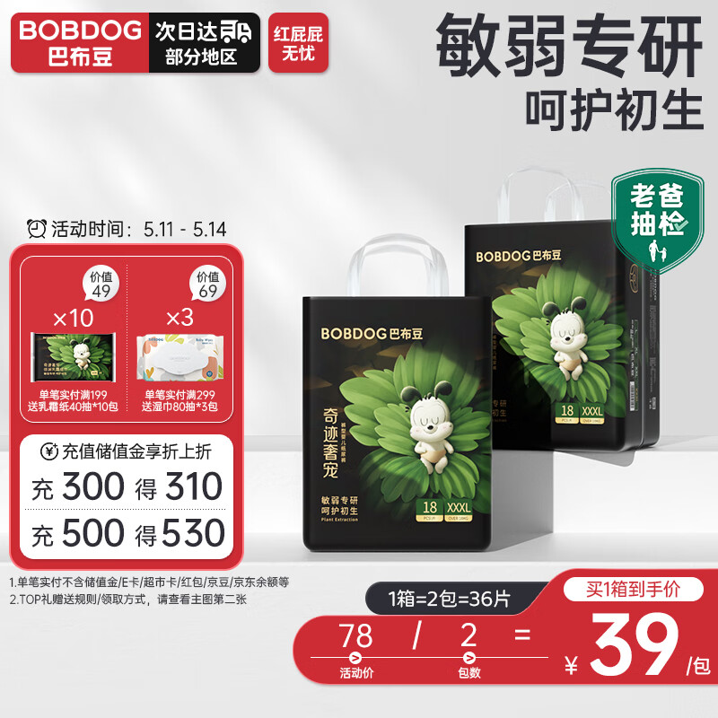 巴布豆(BOBDOG)【老爸】奇迹奢宠裤婴儿拉拉裤XXXL码36片(18-23kg)植萃舒敏价格:78.00元!