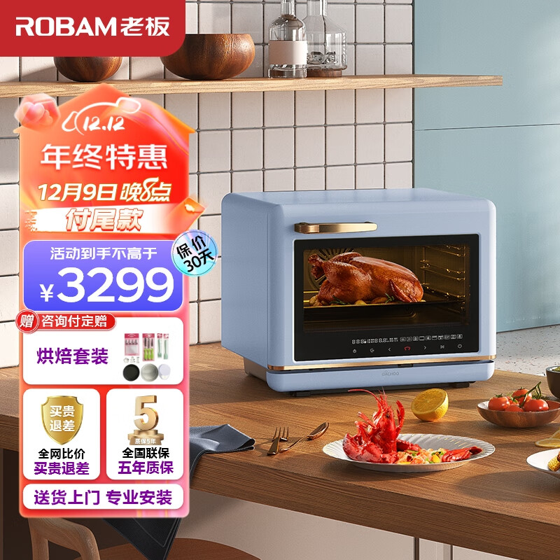 老板(Robam) 【大厨系列】蒸烤箱一体机台式 35L珐琅内胆烤箱蒸箱 蒸烤空气炸三合一 DB610D海盐蓝价格:3299.00元!