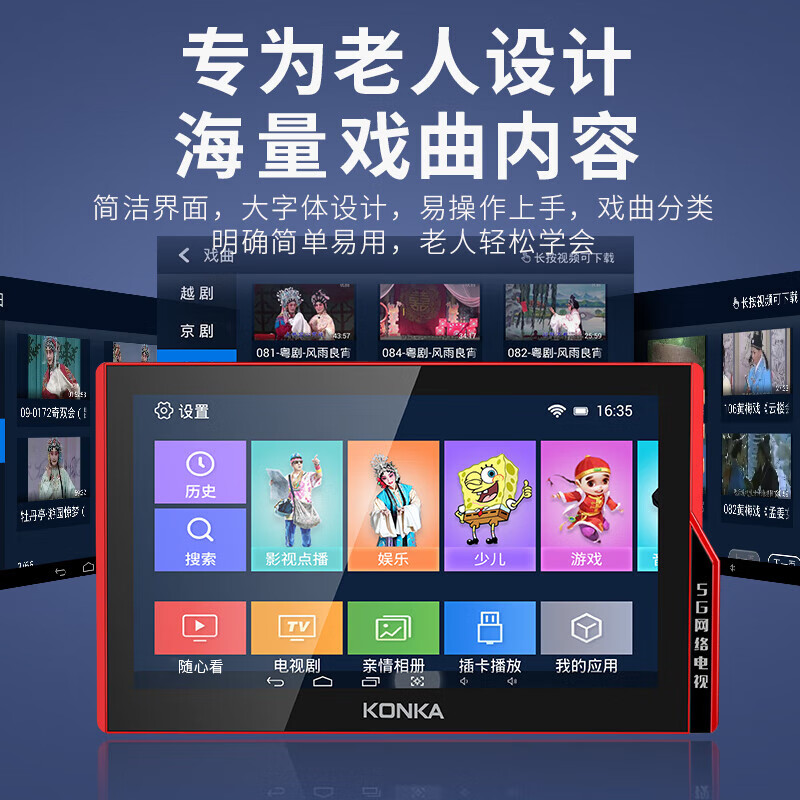 康佳(KONKA) V077S老人看戏机老年人听戏机广场舞视频机音响带显示屏收音机视频播放器平板电脑移动网络小电视价格:429.00元!