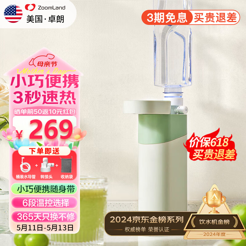 卓朗即热式饮水机便携式烧水壶 小型桌面迷你出差旅行便携饮水机家用小型桶装水抽水器 F-2019G价格:269.00元!