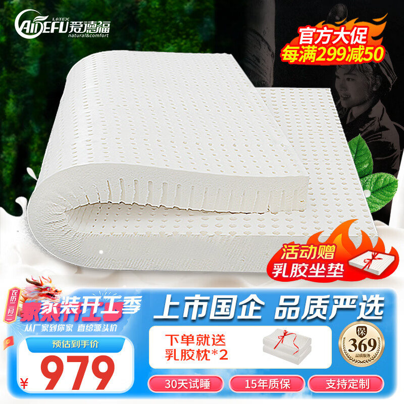 爱德福乳胶床垫泰国进口天然乳胶榻榻米1.5m单双人150*200*7.5(85D)价格:1209.00元!