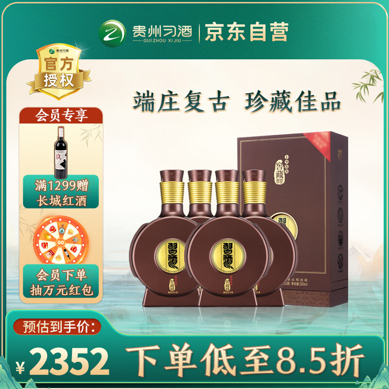 习酒窖藏1988(四盒装)酱香型白酒53度 500ml*4瓶整箱装 新老包装价格:2767.00元!