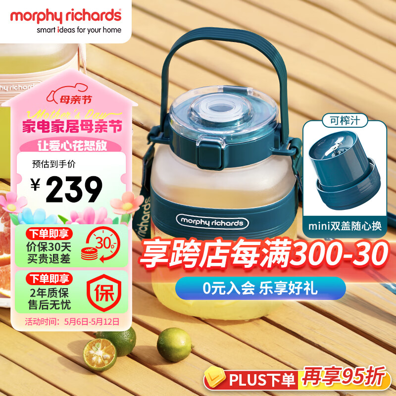 摩飞电器(Morphyrichards)榨汁机 榨汁桶便携榨汁杯无线充电果汁杯随行杯1升容量户外果茶冷泡桶迷你小胖吨MR9805 Nano版 绿价格:239.00元!