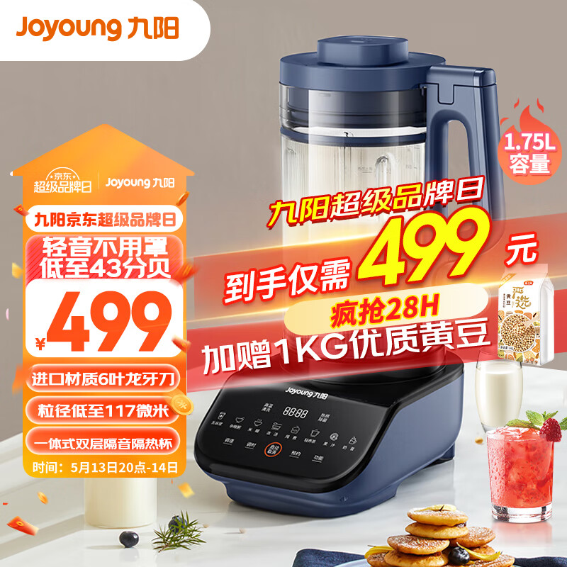 九阳(Joyoung)太空系列 轻音破壁机家用榨汁机豆浆机 多重降噪 触控大屏 纤薄底座 双层杯体L18-P516价格:522.00元!
