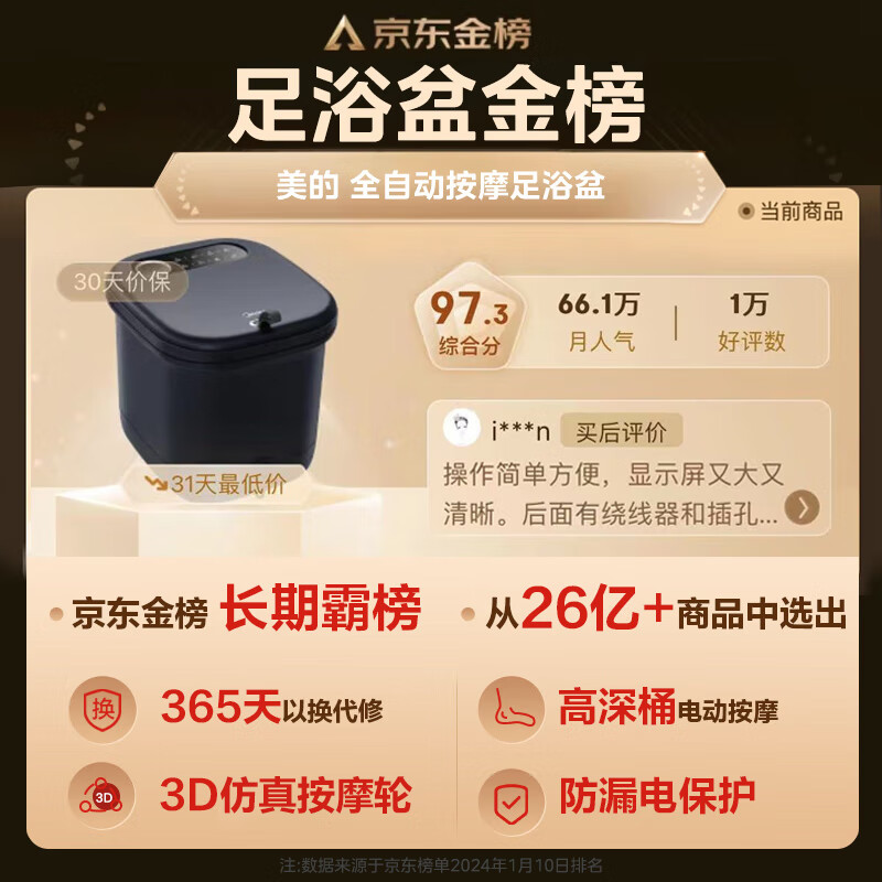 美的(Midea)泡脚桶恒温加热全自动按摩足浴盆洗脚盆3D仿真按摩可拆洗按摩盘母亲节礼物 送长辈礼物MK-AJ0201价格:499.00元!