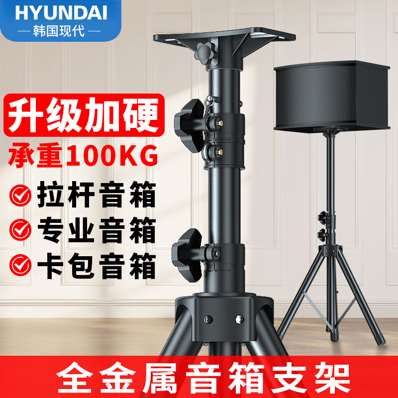 HYUNDAI 现代 音箱落地支架 专业广场舞音响音箱通用便携加重加厚手提拉杆落地音响三脚架 ZJ07 黑价格:149.00元!