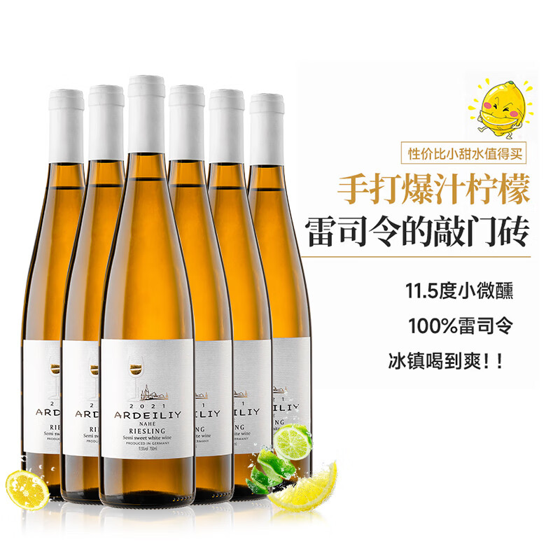 露颂德国进口法定产区100%雷司令半甜白葡萄酒原酒进口750ML*6支价格:496.00元!