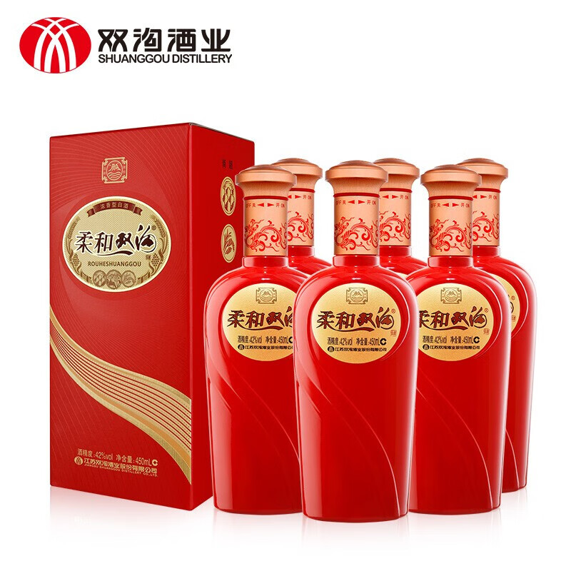 双沟 柔和双沟 红柔和 42度 450ml*6瓶 整箱 新老包装 红精品升级版价格:259.00元!