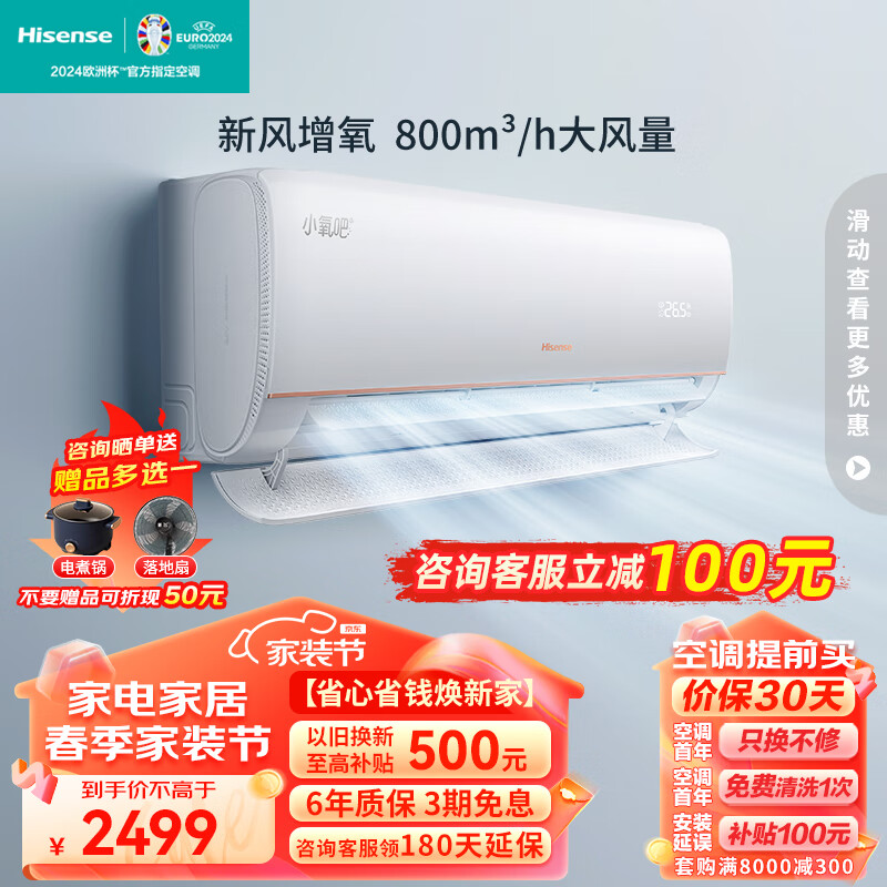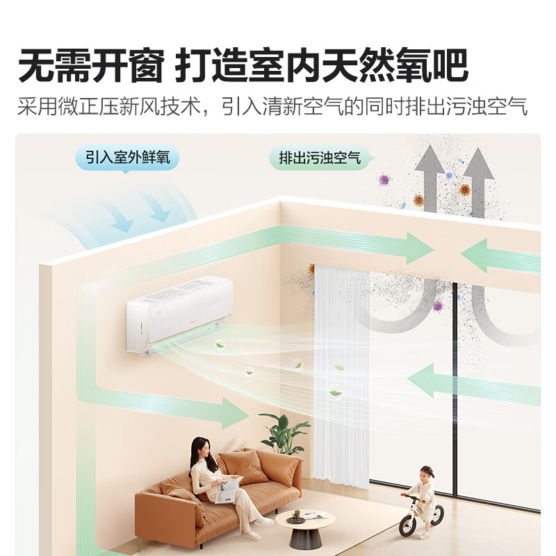 海信(Hisense)大1匹空调挂机 小氧吧增氧新风变频冷暖新一级能效大风量六重净化卧室壁挂式KFR-26GW/X500U-X1价格:2499.00元!