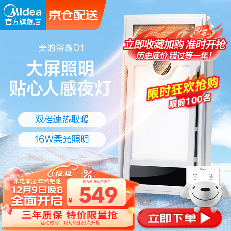 4、一直用美的的浴霸一体机,已经买了很多台了,确实好用,尤其是小夜灯这个功能,真的很好用,京东物流也很给力,头一天下单,第二天就到货了。