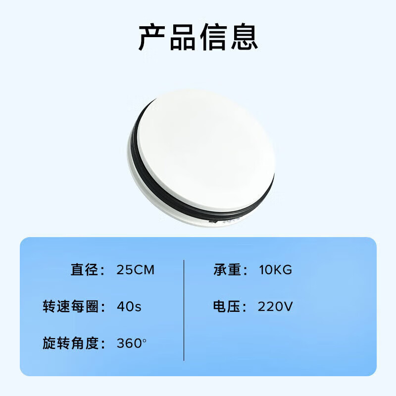 贝阳25cm白色顺时针40秒一圈(承重约25kg)配置参数: