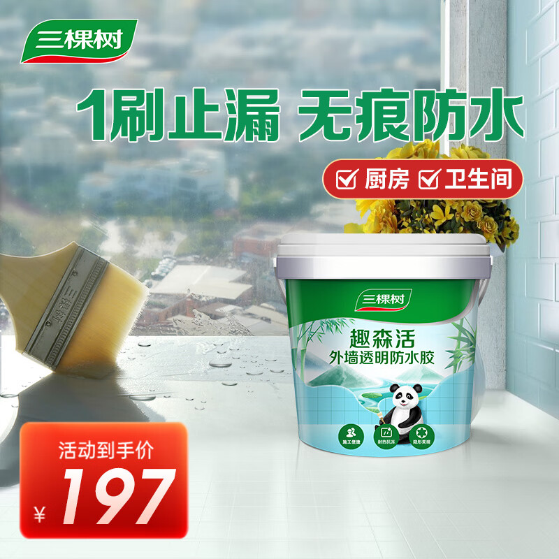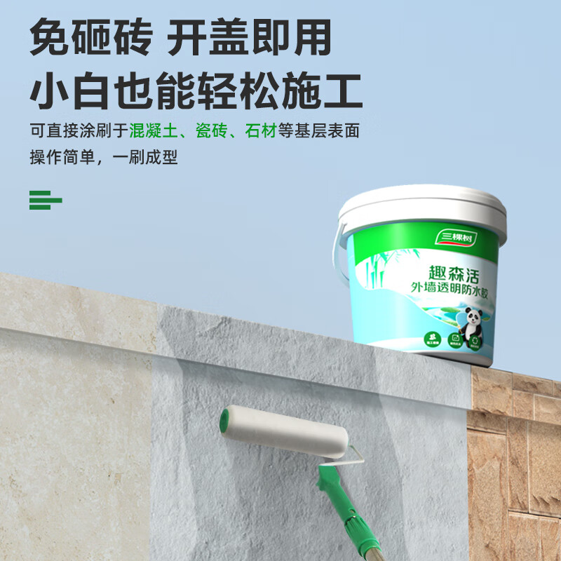 三棵树漆外墙透明防水胶 免砸砖屋顶防水卫生间窗台外墙防水涂料 5kg价格:246.25元!