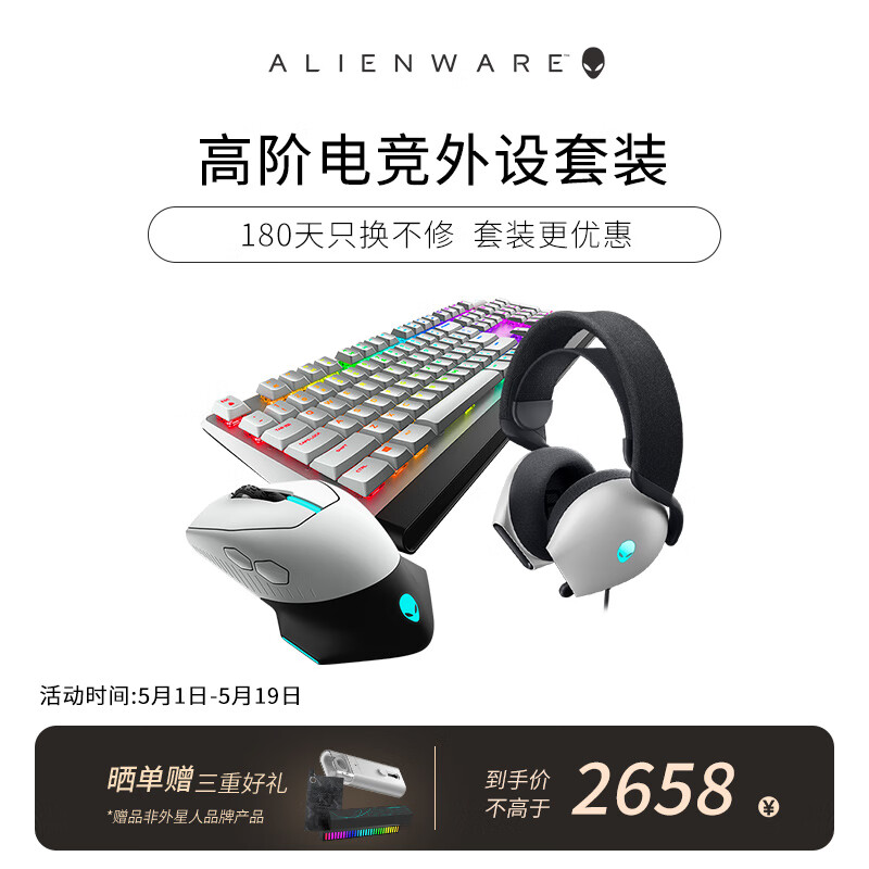 外星人(Alienware)610M+510K+520H 游戏电竞三件套(无线游戏鼠标 有线机械键盘 电竞耳机)RGB高端外设送礼物白色价格:2658.00元!
