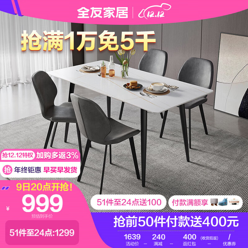全友家居岩板餐桌家用轻奢现代简约餐桌椅饭桌小户型餐桌价格:1639.00元!