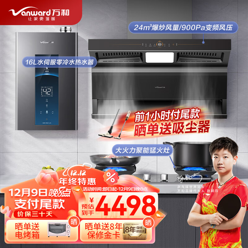 万和(Vanward)烟灶热三件套 三腔7字型大吸力900Pa变频油烟机燃气灶热水器 WL860+C5L90S+MLS5D16(天然气)价格:4498.00元!