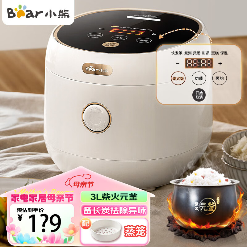 小熊(Bear)电饭煲 电饭锅 家用多功能3升智能防溢预约元釜柴火饭2-3人迷你米饭锅4-5人 DFB-C30L3 3L价格:169.00元!