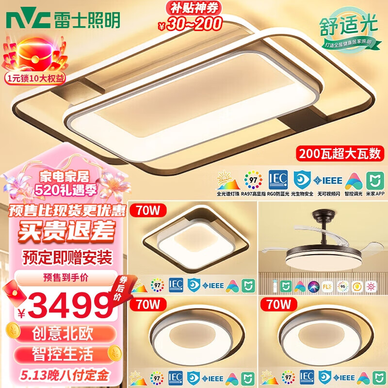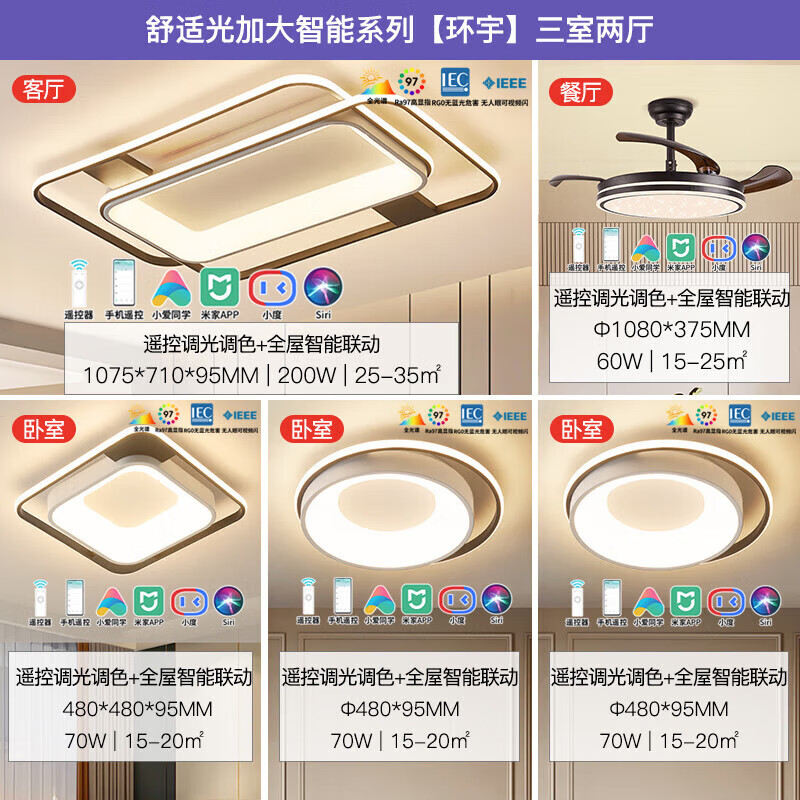 雷士(NVC)LED吸顶灯全屋灯饰客厅卧室餐厅米家语音全智控Ra95大尺寸环宇D价格:4999.00元!