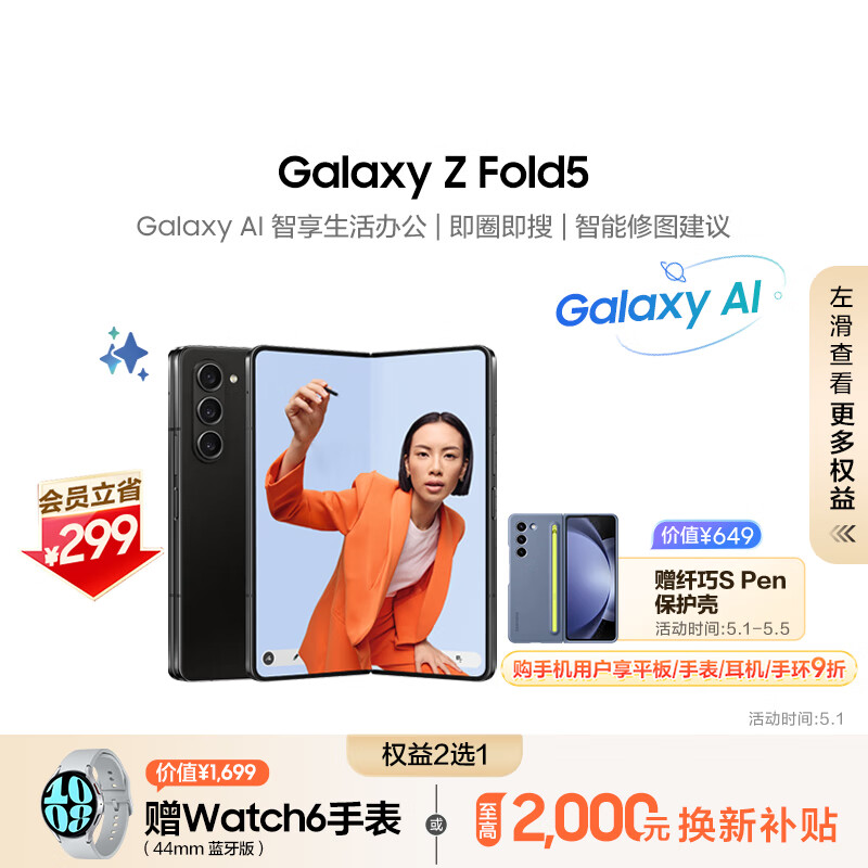三星(SAMSUNG)Galaxy Z Fold5 AI手机 超闭合折叠手机 同声翻译 智能修图摄像 12GB+1TB 宇夜黑 5G折叠屏手机价格:14999.00元!