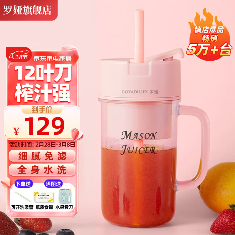 罗娅 16叶刀头榨汁机便携式榨汁杯小型多功能果汁杯果汁机水果机电动随行杯秒碎冰多功能搅拌杯梅森杯 12刀少女粉340ml含吸管【晒图领食谱+水果刀】价格:129.00元!