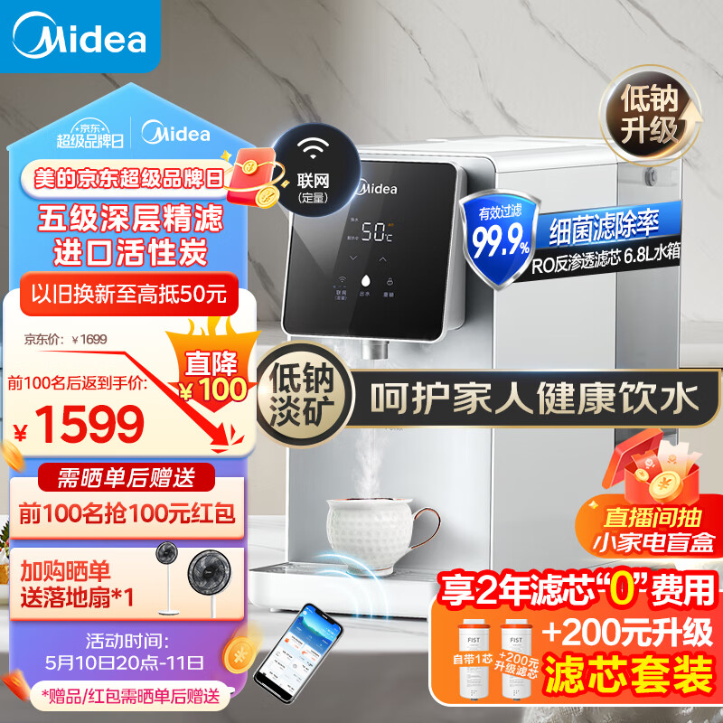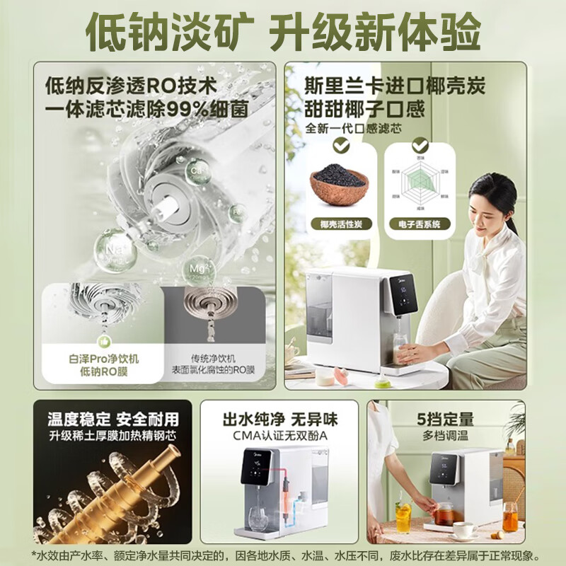 美的(Midea)白泽Pro台式加热净水器低钠净饮机饮水机即热式直饮机净饮一体机远程智控RO反渗透 JR2183T-RO价格:1699.00元!