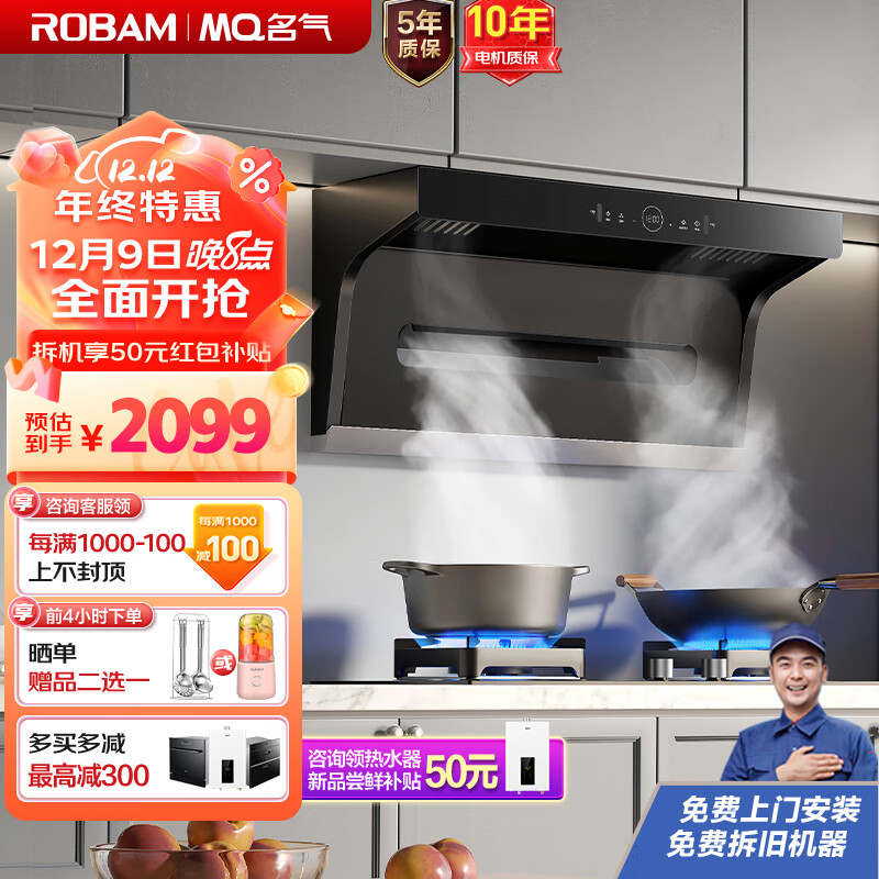 名气(MQ)老板抽油烟机灶具套装7字型家用顶侧双吸油烟机大吸力23m3烟灶套装双灶天然气A5505+B305A免费安装价格:2099.00元!