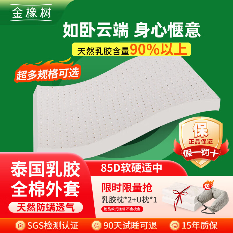 金橡树床垫 泰国进口乳胶床垫子榻榻米单人床垫子床褥薄款云梦85D价格:653.00元!