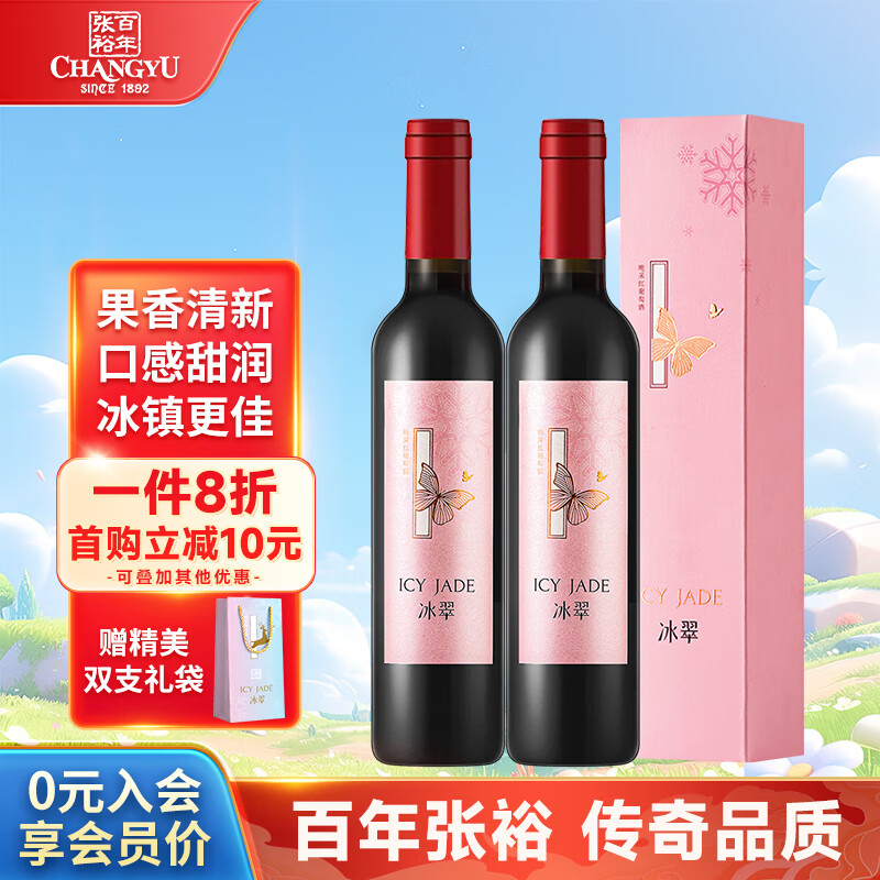 张裕(CHANGYU)冰翠晚采甜红葡萄酒 500ml*2瓶双支礼盒装 国产红酒价格:198.00元!