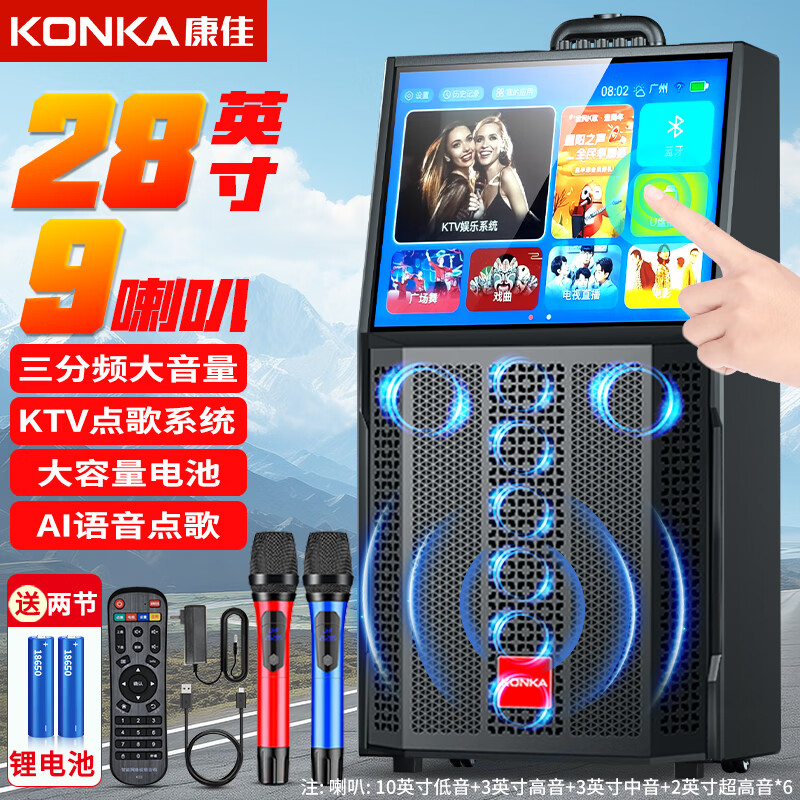 康佳(KONKA)D105大功率9喇叭户外广场舞音响带显示屏触屏网络唱歌蓝牙KTV音箱老人K歌语音点歌一体视频机家用价格:1599.00元!