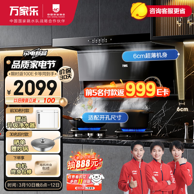 万家乐顶侧双吸油烟机 23立方抽油烟机灶具套装 68%高热效率灶具 家用挥手自清洗烟灶套装TAK5+AY6液化气价格:2299.00元!
