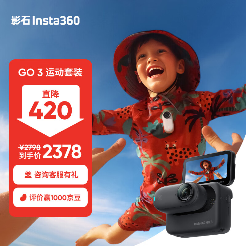 Insta360影石 GO 3拇指相机 运动亲子Vlog骑行宠物防水防抖运动相机(星曜黑128G版)价格:2378.00元!