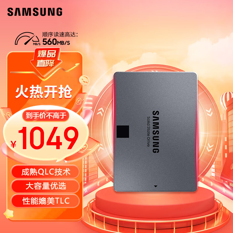 三星(SAMSUNG)2TB SSD固态硬盘 SATA3.0接口 870 QVO(MZ-77Q2T0B )价格:1049.00元!