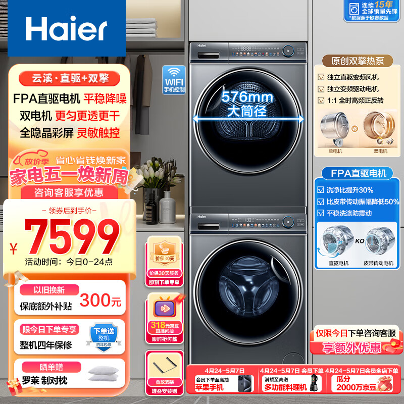 海尔(Haier)平嵌洗烘套装 10KG滚筒洗衣机全自动+双擎热泵烘干机家用 全隐晶彩屏 专属洗烘程序 MATE81+81价格:8099.00元!