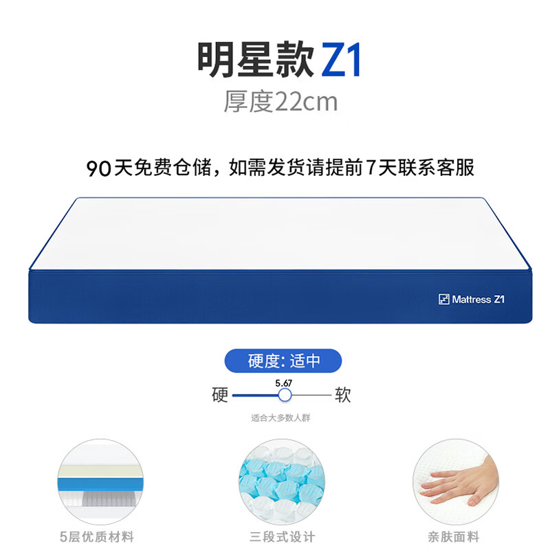 蓝盒子Z1博主推荐记忆棉弹簧床垫双人家用五星酒店1.8x2米价格:4369.00元!