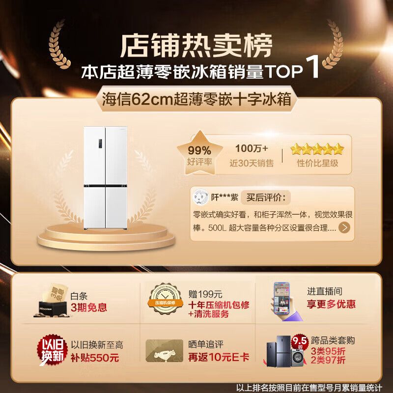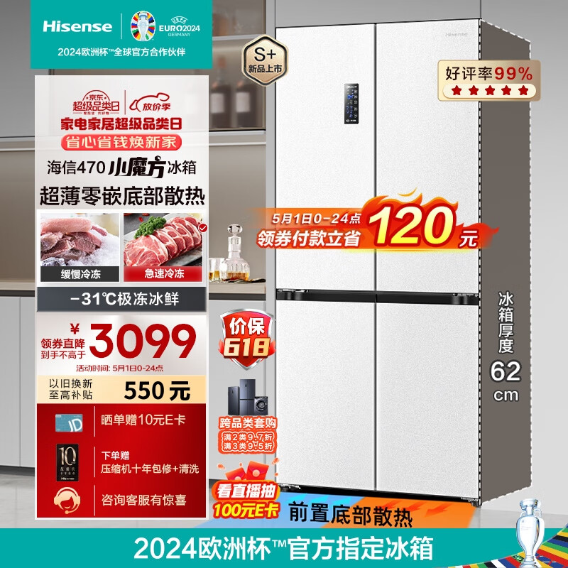 海信(Hisense)470小魔方冰箱超薄零嵌入式四开门冰箱十字家用智控变温一级能效双变频净味BCD-470WMK1DPU白价格:3499.00元!