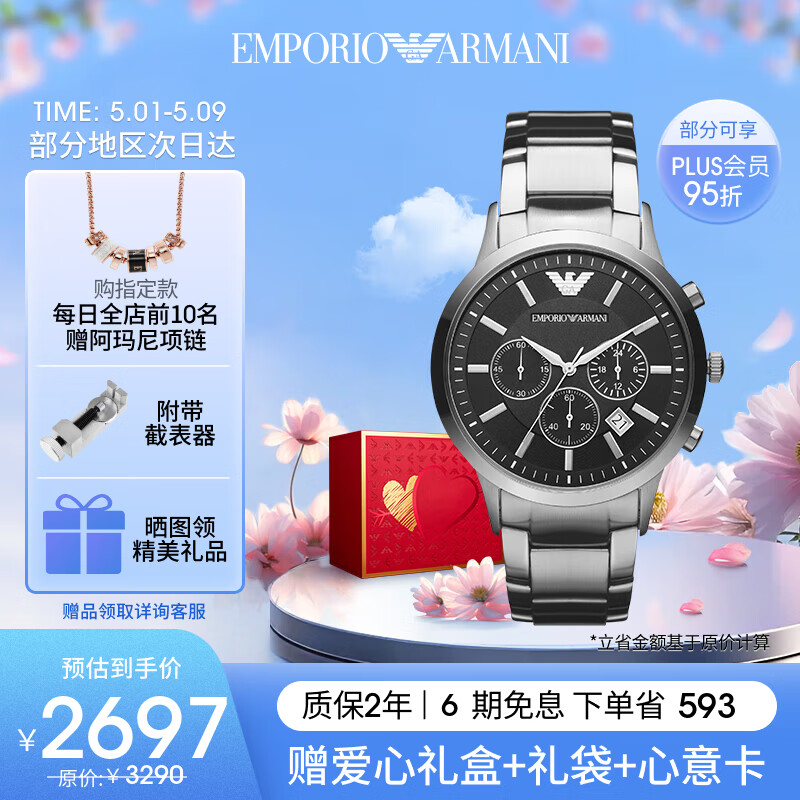 安普里奥·阿玛尼(Emporio Armani)手表男士 多功能三眼计时钢带石英欧美表生日礼物送男朋友AR2434价格:2897.00元!