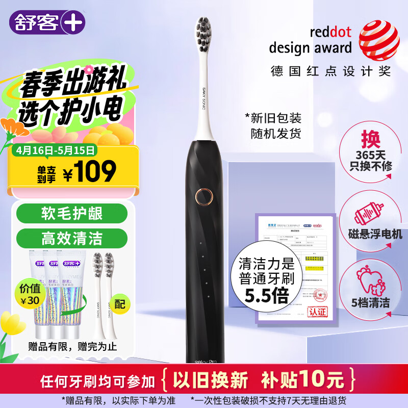 舒客舒克情侣电动牙刷智能换区清洁美白成人学生牙刷电动送男友/女友 5种模式电量提醒母亲节礼物 T2黑价格:139.00元!