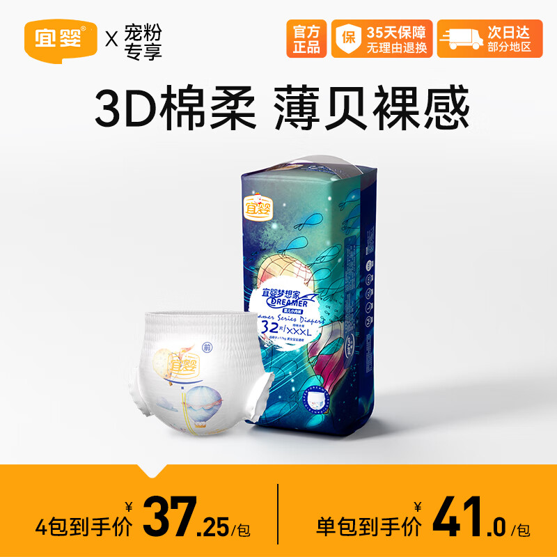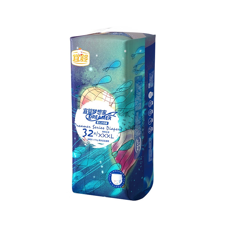 宜婴 梦想家全包臀小内裤XXXL32片秋冬不闷拉拉裤超薄透气尿裤价格:66.00元!