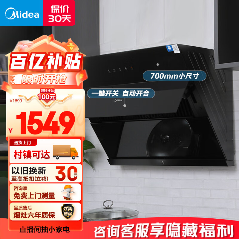 美的(Midea)抽油烟机家用小户型700小尺寸侧吸式抽烟机大吸力脱排油烟机抽烟机CXW-280-J27价格:1549.00元!