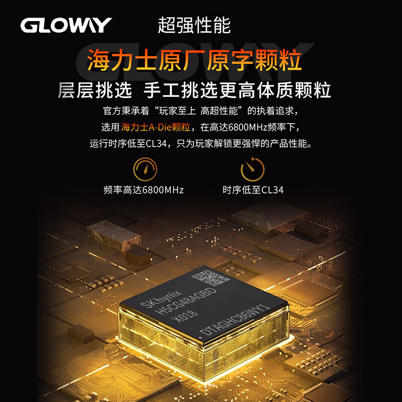 光威(Gloway)32GB(16GBx2)套装 DDR5 6800 台式机内存条 神策RGB系列 海力士A-die颗粒 CL34 助力AI价格:869.00元!