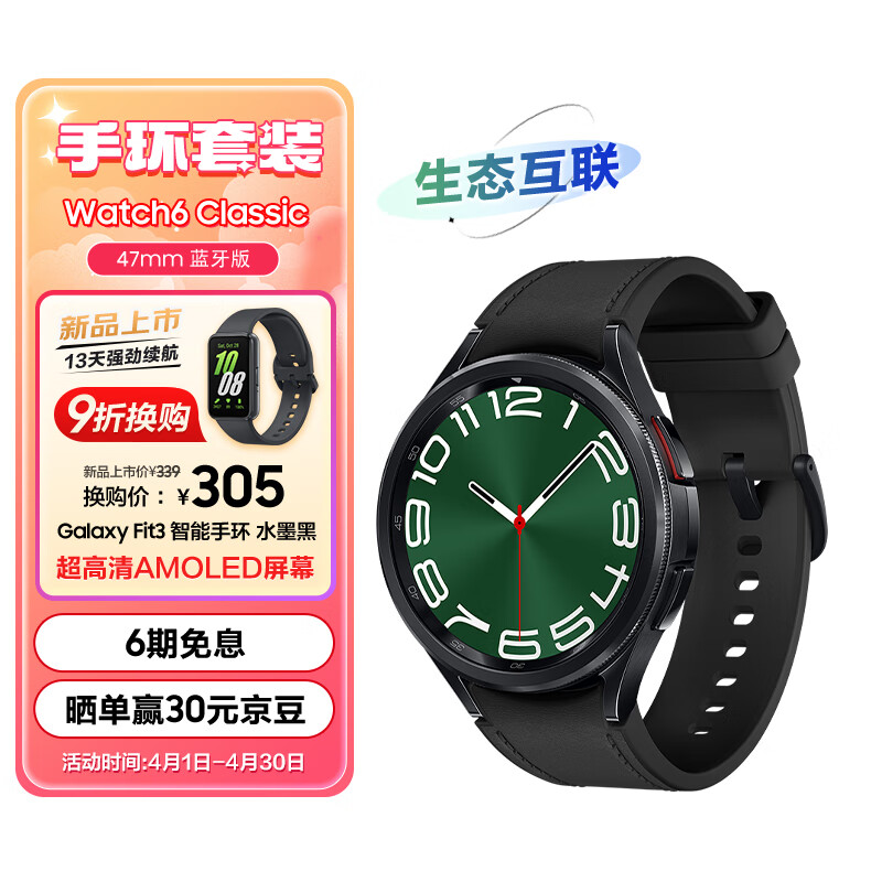 三星Galaxy Watch6 Classic 蓝牙通话/智能手表/运动电话手表/ECG心电分析/血压手表 47mm 宇夜黑价格:2904.00元!