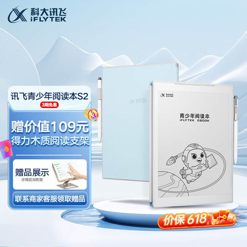 科大讯飞青少年阅读本S2 10英寸大屏电子书阅读器 墨水屏电纸书 必读书目 水墨屏电子书价格:2199.00元!