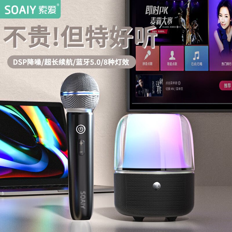 索爱(soaiy)SH77智能单麦版 无线蓝牙音箱户外大音量广场舞音响手提便携式带麦克风话筒k歌家庭KTV 黑色价格:189.00元!