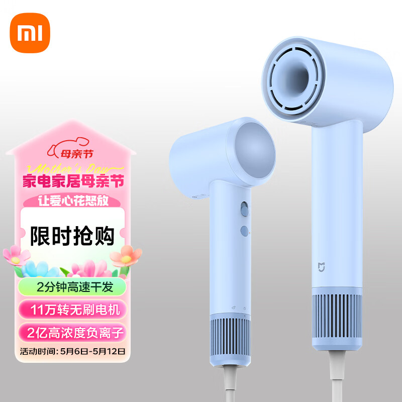 米家小米高速吹风机H501 SE 蓝色 掌中小旋风 疾速干发 大功率负离子护发 无刷电机电吹风 礼物推荐价格:179.00元!