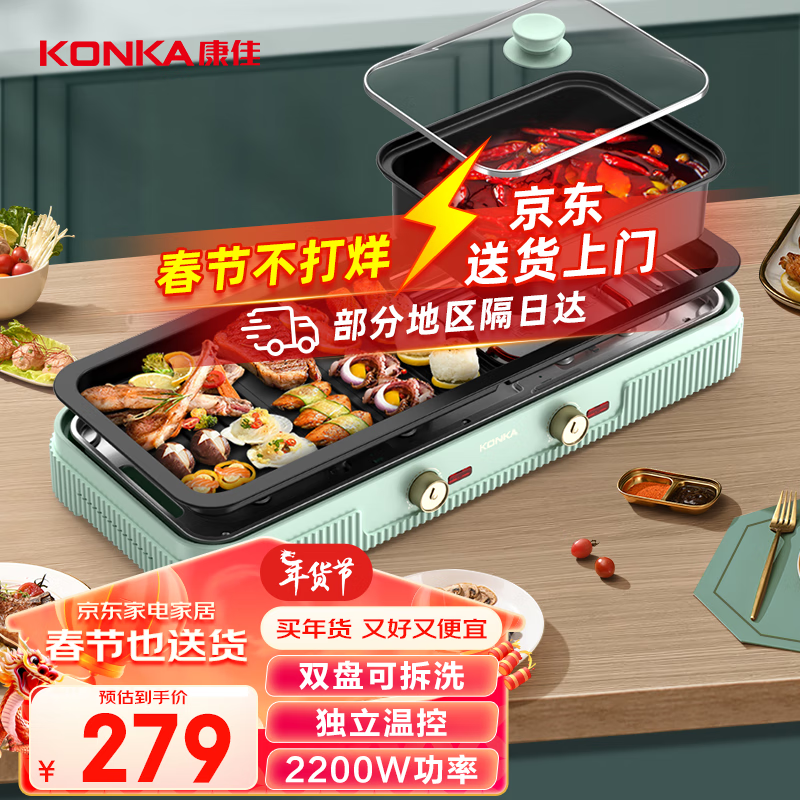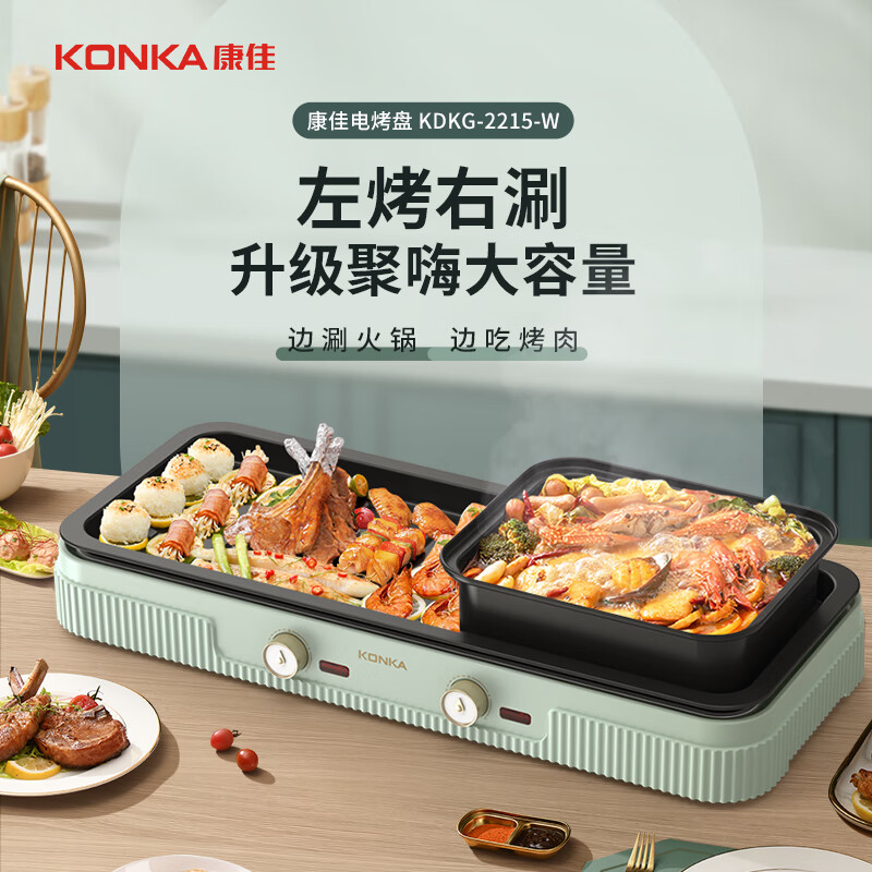 康佳(KONKA)电烧烤炉 烤肉锅 多功能电火锅涮烤一体锅家用电烤炉烤涮锅 双温控可分离 KDKG-2215-W价格:279.00元!