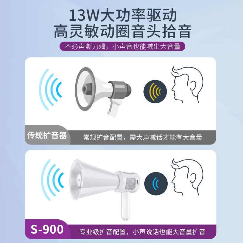 索爱(soaiy) S900喇叭扩音器喊话器录音叫卖扬声器13W大功率大声公手持便携式摆地摊蓝牙5.3高音宣传 经典版价格:168.00元!