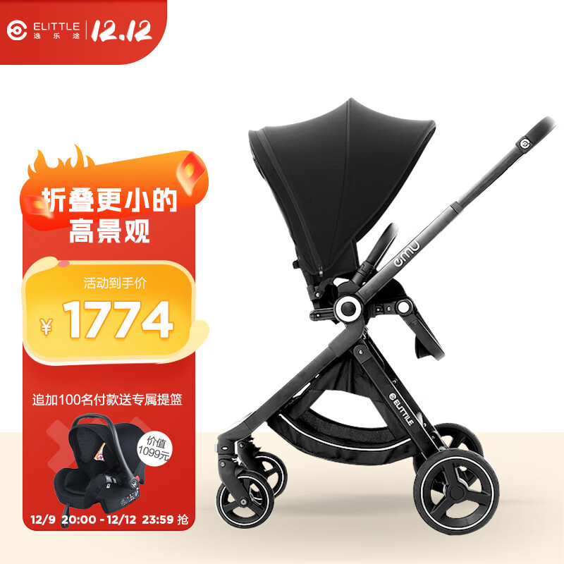 elittile 逸乐途 婴儿推车 高景观婴儿车 双向折叠可坐可躺 EMU 泼墨黑价格:2048.00元!