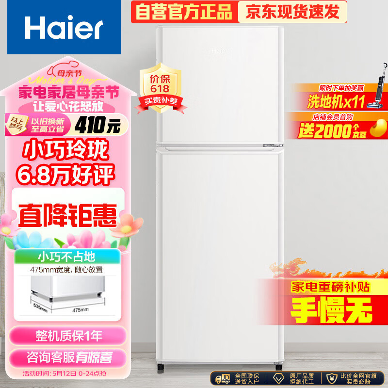 海尔(Haier)137升 两门双开门电冰箱家用小户型迷你宿舍租房办公室节能省电1-2人可用BCD-137TMPF价格:843.00元!