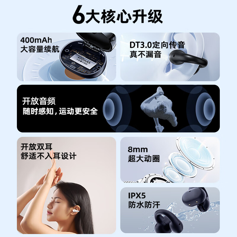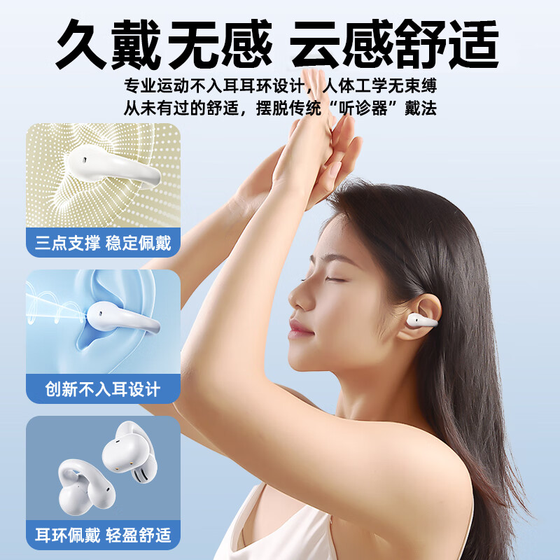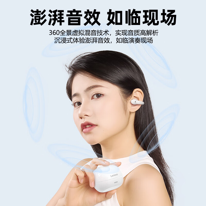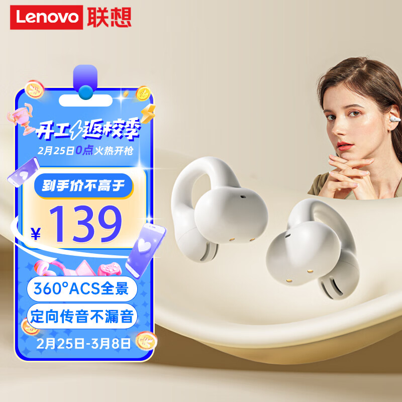 联想(lenovo)蓝牙耳机骨传导概念耳夹式无线开放不入耳运动跑步骑行通话降噪适用于苹果华为小米手机TC3308白色价格:139.00元!