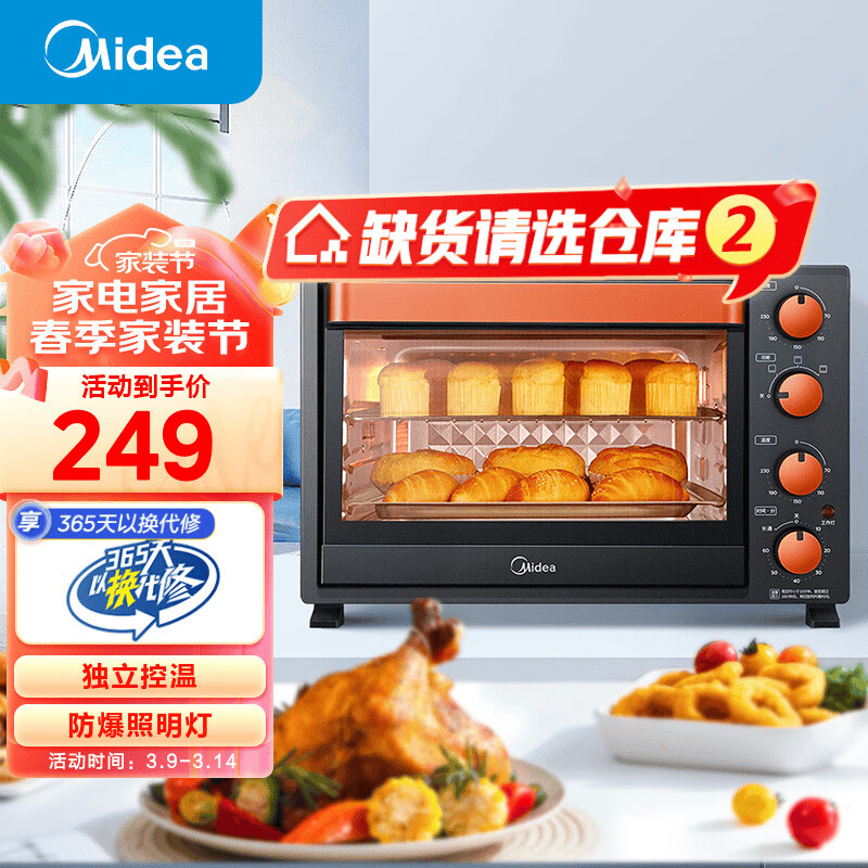 美的(Midea)家用多功能电烤箱 35升大容量烤箱 上下管独立控温 防爆照明灯 四旋钮易操作T3-L326B【仓库1】价格:247.00元!